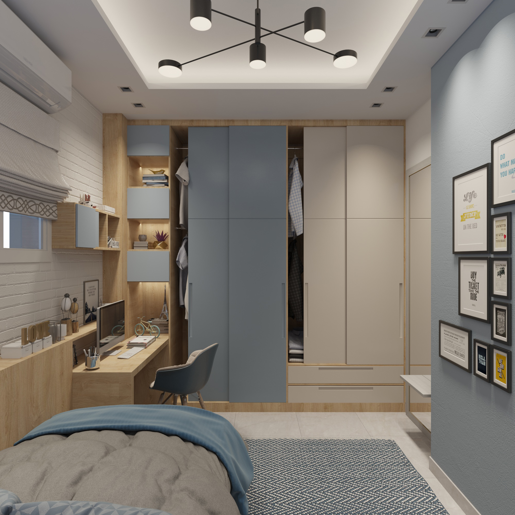 The client wanted to transform the basement into a complete two-bedroom apartment with an area of 405 FT2. There was no ventilation and only one façade for natural light. The internal staircase made our task even more complicated.